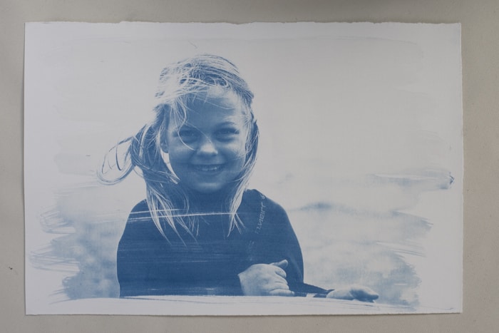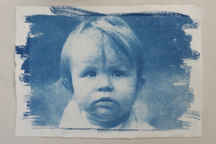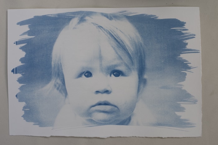 Here the exposure was very hard to get right as the eyes turned out much darker than in the original digital file. This is certainly something I have to watch out for and need to adjust in my negatives. The third image was toned in coffee. It was quite underexposed (hence very light. It is this way round in cyanotypes) and I wanted to see if toning might help add a little detail. It helped to a certain degree.