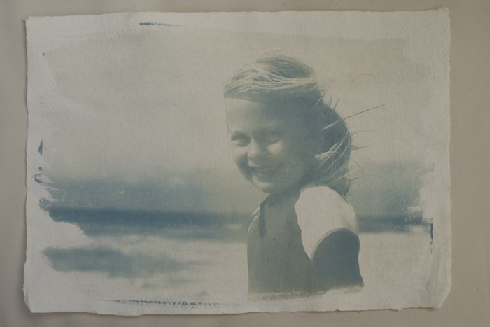 In this image I had the same problem with the eyes as before. Here I also tried selectively toning only the little girl with black tea to take the edge off the blue there but leave the sea and sky untouched.