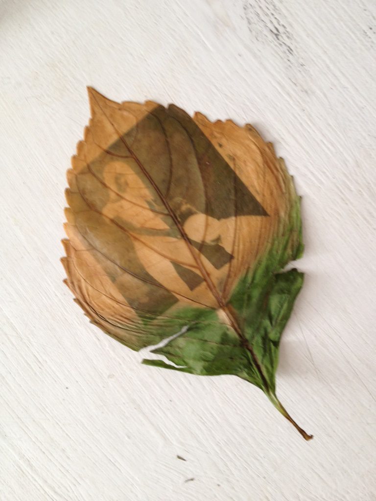 Parallel to that I decided to try an even easier process (or so I thought). For the Chlorophyll process you print directly with and on a leaf. All I had to do was to put a negative on a big enough leaf and sandwich them between two glass plates ( or in a contact frame) and leave out in the sun. Saying that, there are artists who produce incredible images through this process. Binh Danh, for example, printed in his Immortality series images of the Vietnam War into and onto the leaves of tropical plants. Ackroyd and Harvey use Chlorophyll for huge and very impressive images.